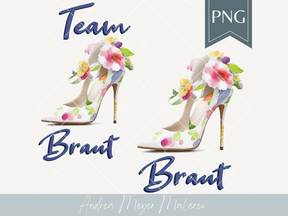 These lovingly designed PNG print files “Bride” and “Team Bride” with elegant bridal shoes and flowers are ideal for your hen party or wedding preparations.