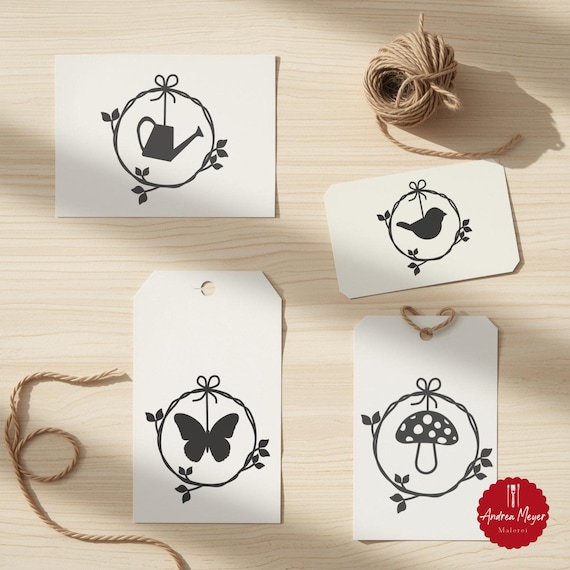 This SVG set offers round wreath designs for spring-themed gift tags and labels. Ideal for packaging, party favors, jam jars, cards, bags, and small gifts. Perfect for DIY enthusiasts, handmade sales, and spring gifts. Compatible with Cricut and Silhouette (SVG). Digital download, no physical product.