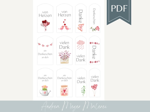 Are you looking for cute gift tags to simply say thank you? Here you’ll find a lovingly designed PDF with various printable tags – perfect for gifts, DIY projects, or small tokens of appreciation. Simply download, print on heavy-duty paper, cut out, and you’re done!